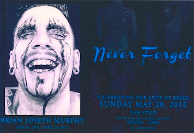 The memorial was starting at noon, but I was expected at The Stud by 11 to help set-up. Paul King and Julie Tolentino, along with many other of Brian's old friends, had stepped in and rescued me from having to organize the event. Julie and Paul, you made it possible for this memorial to grow as big as it wanted and needed to.